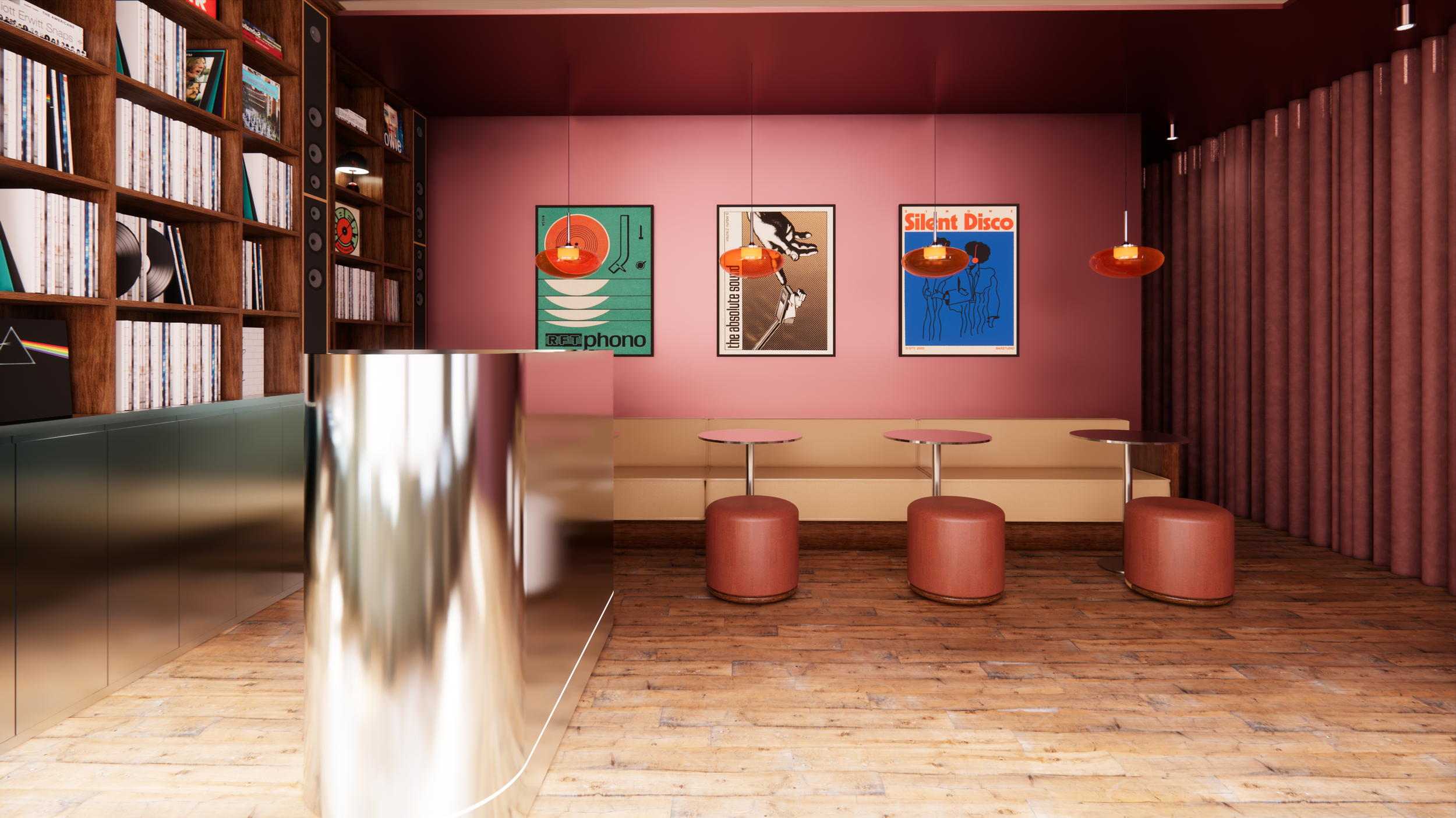 VINYLA Mid-Century inspired record store and bar in Lancaster. We’ve designed this multi-functional space for both day and night to serve as a ‘third space’ where people can shop, socialise & enjoy their passion for music.
